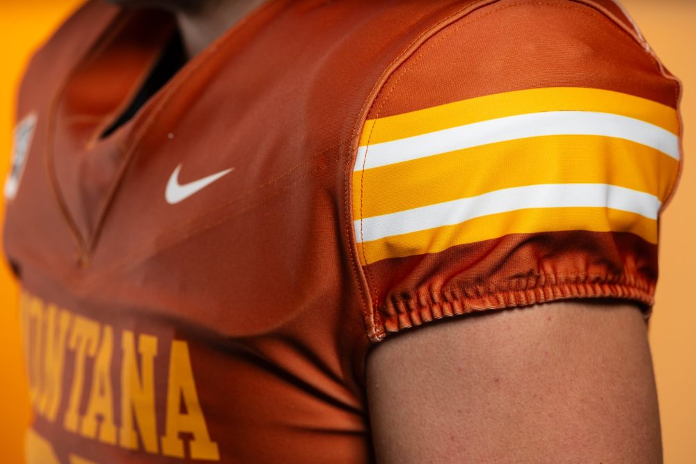 The uniforms closely resemble but are not an exact replica of what the Grizzlies wore that season, with copper-colored jerseys that prominently display a gold “Montana” wordmark above matching numbers, gold helmets and white pants.