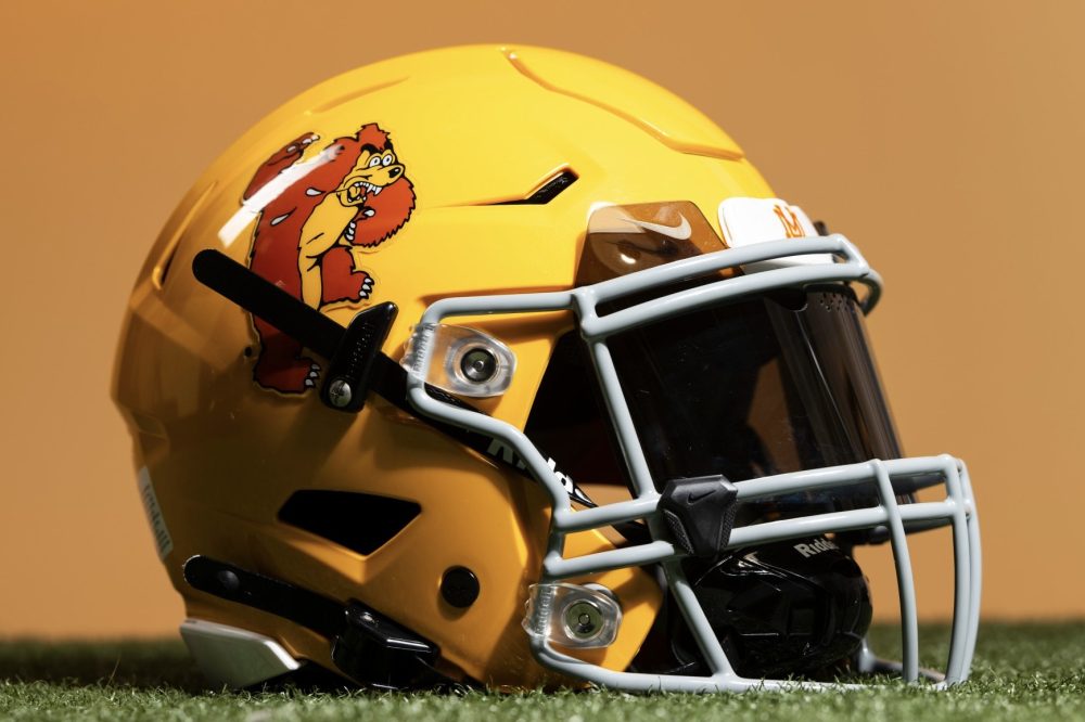 The gold helmet also features a vintage “Snarling Griz” logo that was used from 1966-82 on the sides rather than the Script “Griz” that has adorned their standard helmets since 1988 and through a rebrand to their current maroon and silver color scheme in 1996.ย