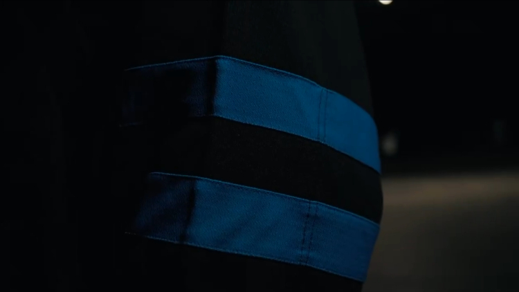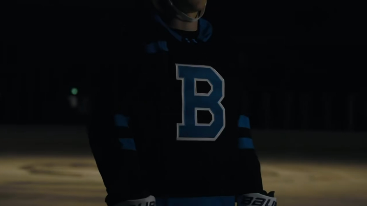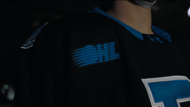 Like the Steelheads’ regular jerseys, the new third jerseys follow a fairly simple template, with two blue stripes around the sleeves and one broad stripe around the waist of the black base. The front of the jersey features a large blue “B” with a white outline.