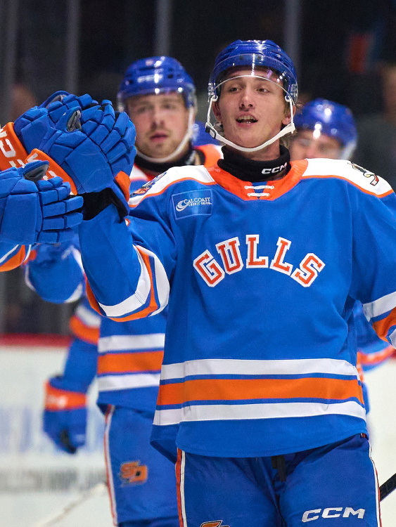 All three of the Gulls’ jerseys for the 2025-26 season will feature the Gulls’ 10th anniversary logo on the left chest.