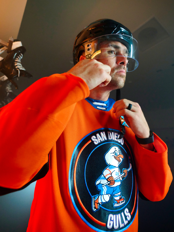 The San Diego Gulls are bringing back a favorite character from their city’s hockey history for a new third jersey marking their 10th anniversary.
