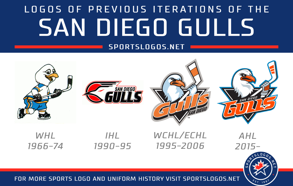 Despite this being only the AHL iteration’s 10th anniversary, they are the fifth hockey team in San Diego to use the Gulls nickname. The WHL team was the first (1966-1974), followed by teams in the International Hockey League (1990-1995), the West Coast Hockey League and ECHL (1995-2006), and a junior team that now plays in the United States Premier Hockey League. The junior squad started as the San Diego Surf in 2001, changed their name to the Gulls in 2008, and then became the San Diego Sabers in 2015 to make way for the AHL team.