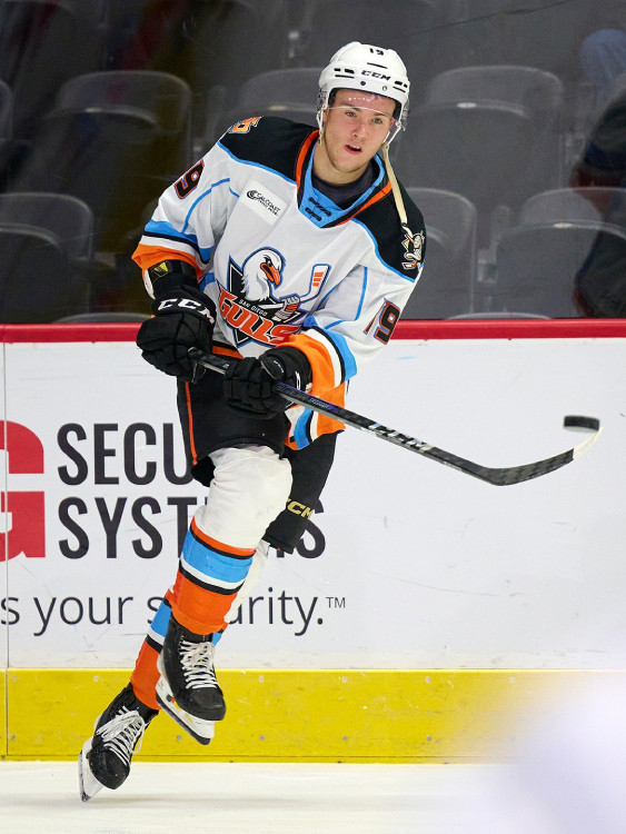 The American Hockey League affiliate of the Anaheim Ducks unveiled the jersey last week and will wear them for the first time at their home opener against the Henderson Silver Knights on Saturday, October 18. Front and center on the sweaters is a new version of Sandy the Gull, the mascot of the first iteration of the Gulls, which played in the Western Hockey League (not affiliated with the major junior hockey league with the same name operating today) from 1966 to 1974.