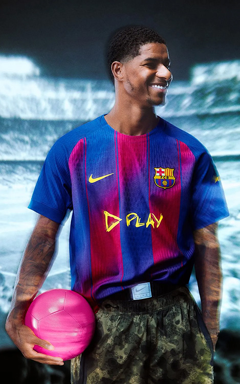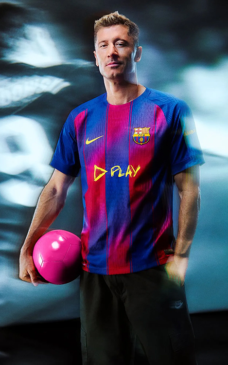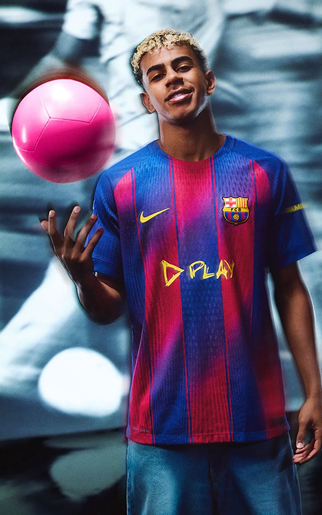 Displaying Play on the front of the shirt highlights the power of music to cross borders and bring people together. Barça is famed for its youthful spirit and expressive playing style, shaped by the talents nurtured at La Masia. Ed Sheeran’s love of both football and the city of Barcelona makes this collaboration even more genuine, built on the belief that creativity, music and football can move people, both on and off the pitch.