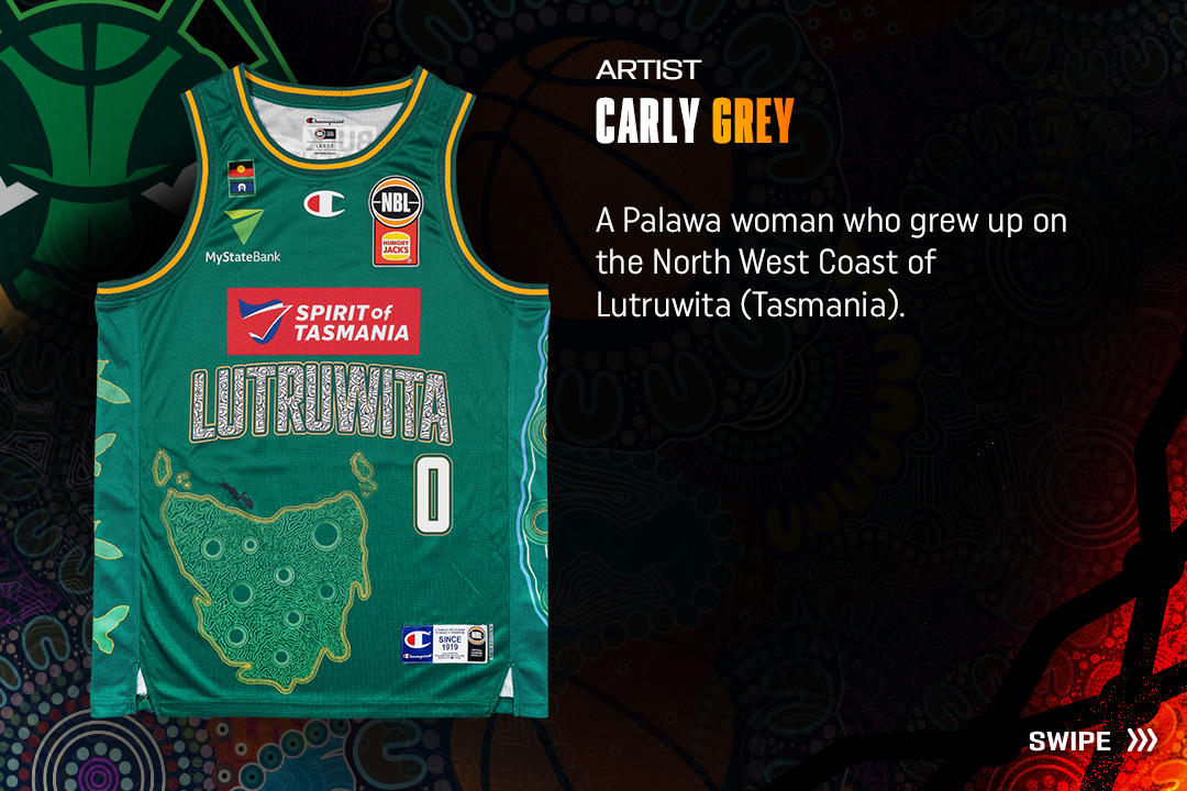 Artist: Carly Grey — A Palawa woman who grew up on the North West Coast of Lutruwita (Tasmania).