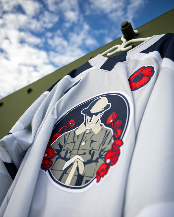 Game-worn and game-issued jerseys are currently being auctioned off online through DASH, with bids closing at 7 p.m. ET on Wednesday, November 12. Proceeds from the auction will benefit the the 78th Fraser Highlanders Fort Conestoga Garrison and the Kitchener-Waterloo Royal Canadian Legion Poppy Fund.