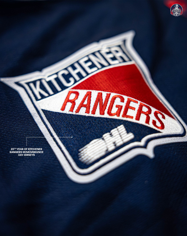 The Rangers donned the 20th edition of their Remembrance Day jerseys on Sunday, November 9, when they hosted the Kingston Frontenacs at the Kitchener Memorial Auditorium — the team’s last home game before the holiday.