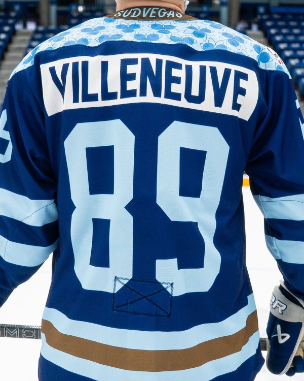 The jerseys they wore for the occasion were mainly royal blue, with light blue stripes around each sleeve and light blue and brown stripes around the waist. The logo of the Sudbury Blueberry Bulldogs from the show appeared on the front.