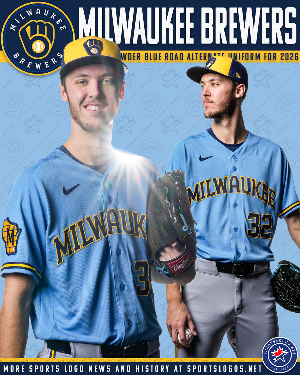 According to the club, this uniform will replace the Brewers’ road grey option in the rotation beginning in 2026, though it remains unclear whether the powder blue or the existing navy road alternate jersey will be designated as the primary set for away games.