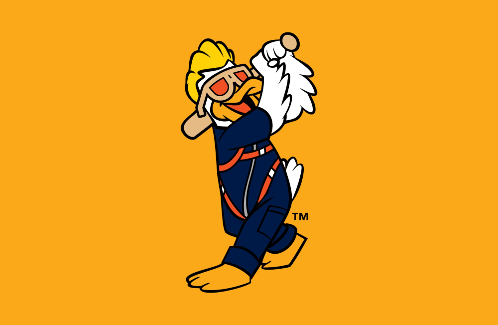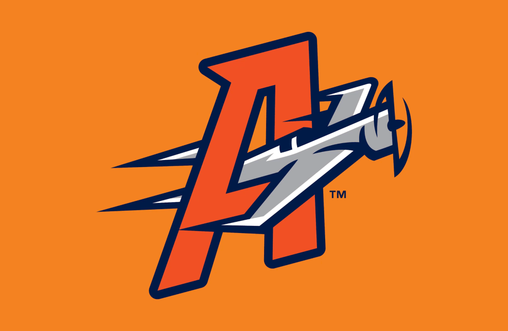 The unveiling includes three new logos, which maintain the Aviators’ existing orange and navy color palette. The first mark features a fighter pilot helmet with baseball seams across the top and the Vegas Strip reflected in the visor. The second shows an H-1 Racer plane (which was built in 1935 by the Howard Hughes Corporation) flying through the letter A. And third highlights the team’s mascot, Spruce the Goose, who is also named for a Hughes aircraft, the Spruce Goose, swinging a bat.
