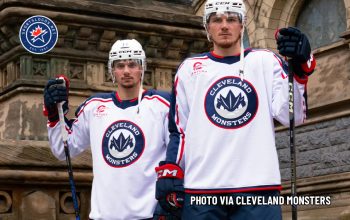 The uniform replicates the style worn by the Whalers during their first six seasons in the NHL (1979 to 1985), it’s white with a green and blue collar; diagonal blue, white, and green striping on each arm; straight blue, green and white stripes around the waist; the iconic Hartford Whalers logo on the chest; and their lovable “Pucky the Whale” logo on the shoulder.