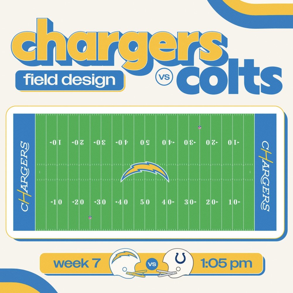 In addition to the uniforms, Los Angeles will paint a vintage design on the turf at SoFi Stadium that features their 1960s wordmark in the powder blue end zones. They previously used this design for select games from 2009-15, originally in celebration of the AFL’s 50th season.